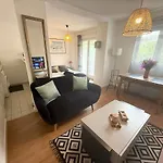 The 35 m^2 apartment also lies nearly a 20-minute drive from Notre Dame Church.